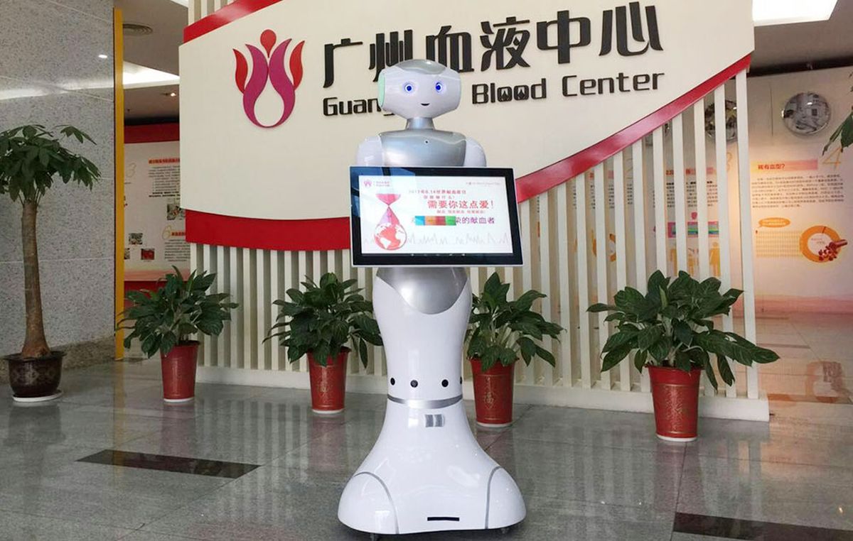 來來往往的就醫群眾都看到這個方便的新面孔,醫院導醫導診服務機器人,這是一款佛山市人民醫院引進的全新智能醫用導診機器人,在門診大廳正在和大家聊天,可以了解咨詢健康資訊,觀看健康宣傳片,查詢醫院的醫師信息。